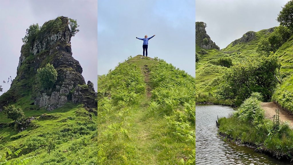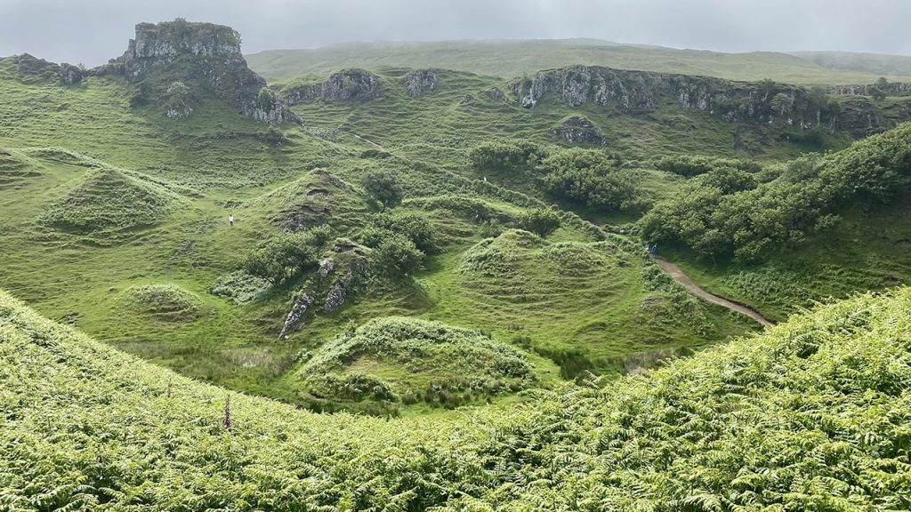 Once on the right path, it was not only another tiny road but also a steep uphill, to a car park. We parked up, got out for a walk around, and wow! …what a delight. Lots of little hill formations all together making up their own special glen.