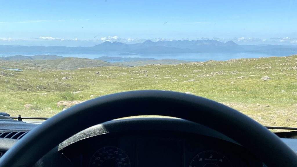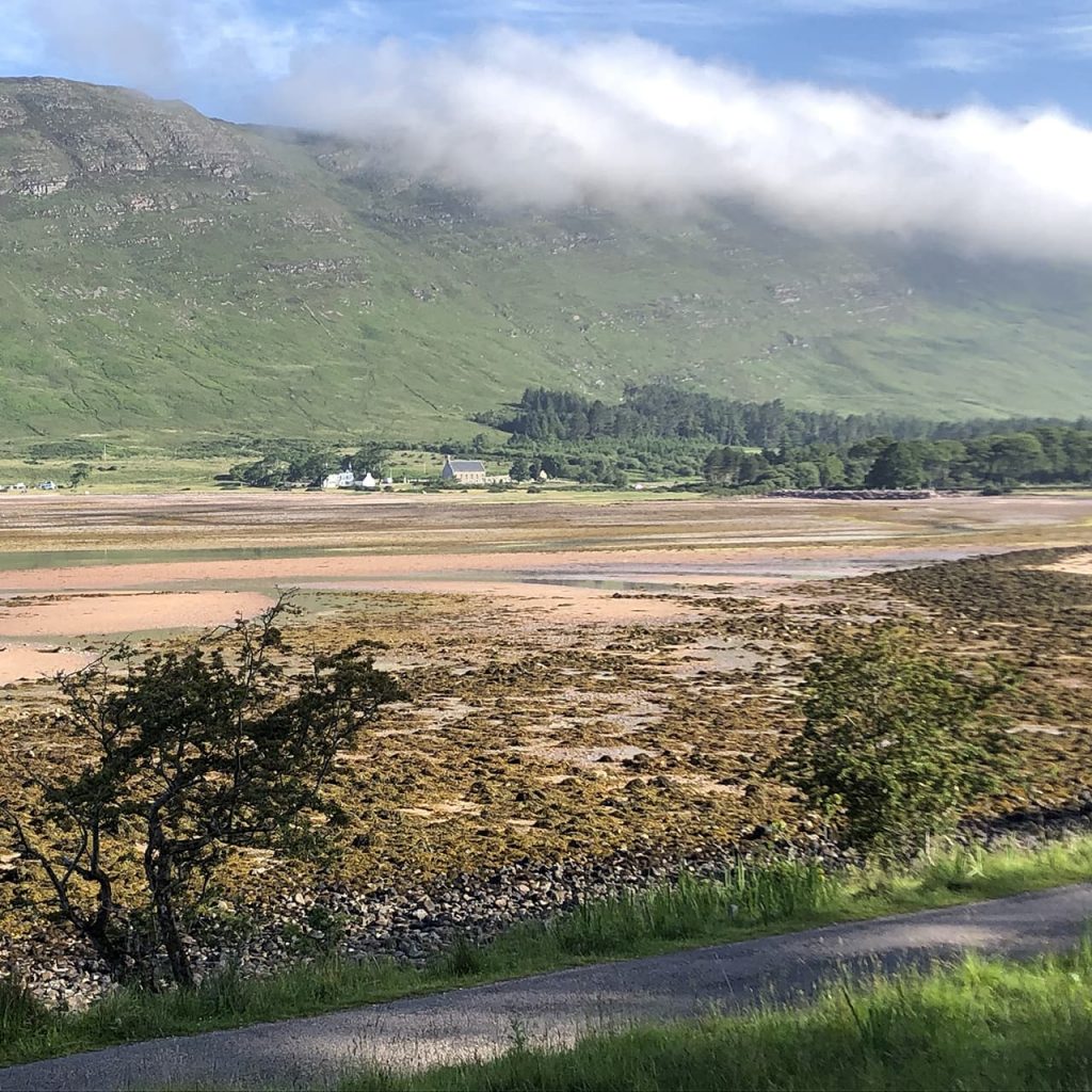 After the stresses of the ‘rollercoaster’ – and because there had been a distinct lack of ice cream for at least a day! – we parked up for a while in Plockton, a little village overlooking the lovely Loch Carron. Sitting watching the sailboats move across the loch was very peaceful.